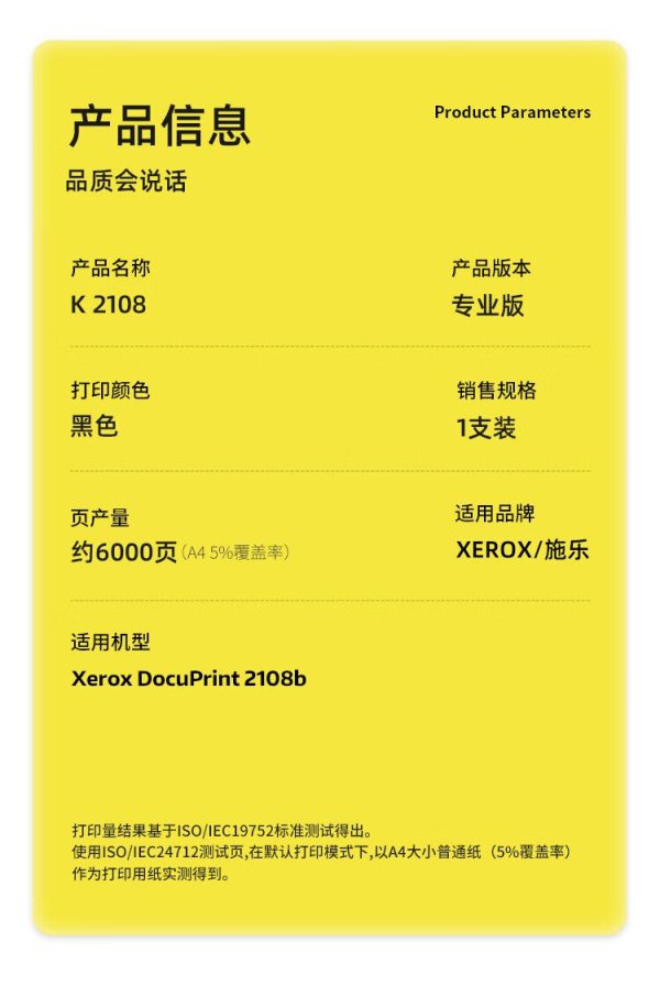 商品名称:科思特(KST) 2108专业版 6000页 适用Xerox DocuPrint 2108b 硒鼓 黑色 (计价单位:支)