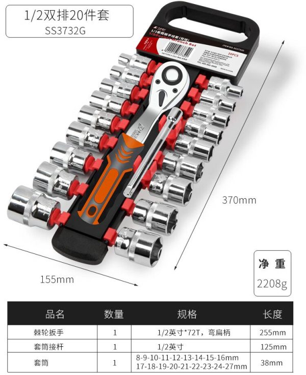 卡夫威尔 SS3732G 20件套 1/2大飞12.5mm 棘轮扳手套装 (计价单位:套)
