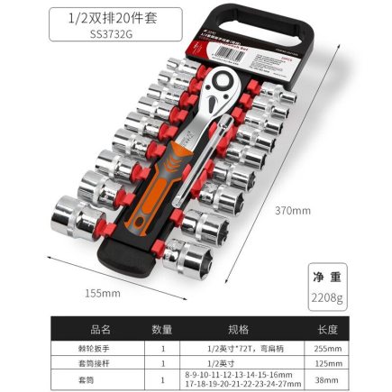 商品名称:卡夫威尔 SS3732G 20件套 1/2大飞12.5mm 棘轮扳手套装 (计价单位:套)