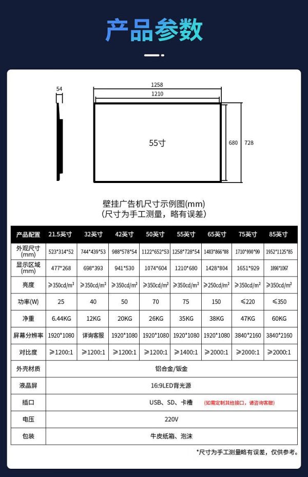 商品名称:互视达 CW-LY-43 43英寸 壁挂广告机 (计价单位:台)