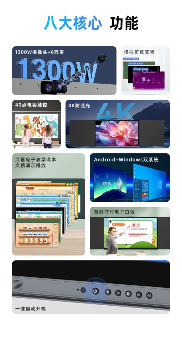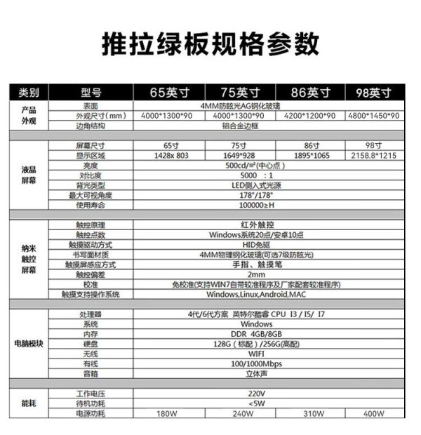 商品名称:互视达(HUSHIDA)CW-ZZGW-863CG 86寸 安卓4G+32G i7/8G+256G 壁挂式纳米黑板 单位:台
