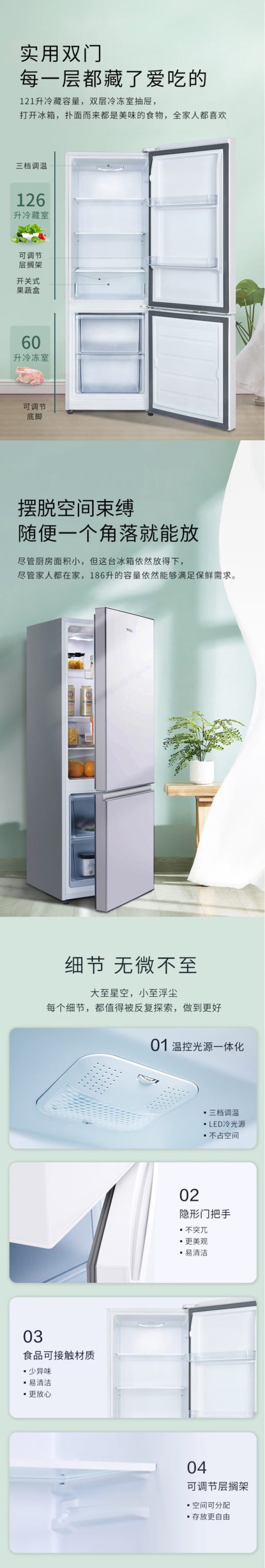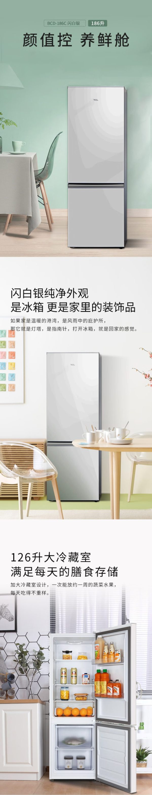 TCL BCD-186C 186升 双门 冰箱 闪白银 (计价单位:台)