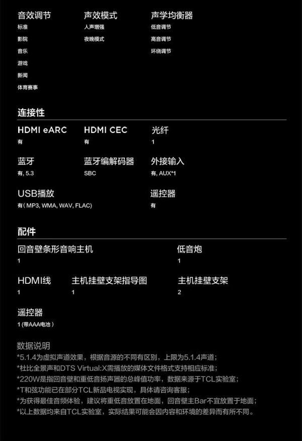 商品名称:TCL S55H 5.5寸 回音壁蓝牙音响 (计价单位:个)