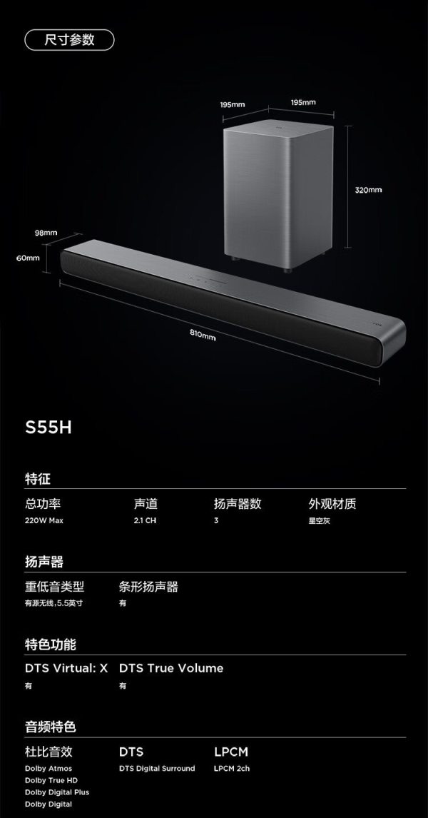 TCL S55H 5.5寸 回音壁蓝牙音响 (计价单位:个)