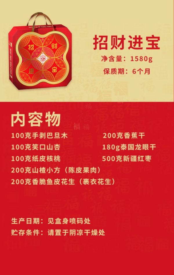 商品名称:华巍 1580g 招财进宝坚果礼盒 (计价单位:盒)