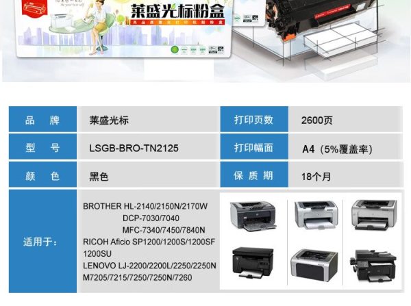 商品名称:莱盛光标 LSGB-BRO-TN2125 2600页 适用于 BROTHER HL-2140, 2150N 粉盒 黑色 (计价单位:支)