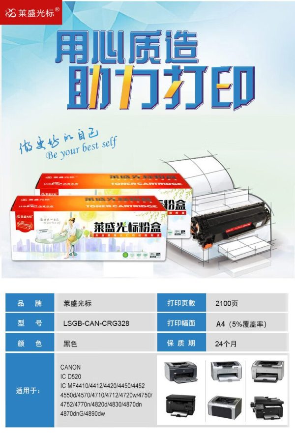商品名称:莱盛光标 LSGB-CAN-CRG328 2100页 适用ICD520 ICMF4410/4412/4420/4450/4452 4550d/4570 4710/4712/4720w 粉盒 黑色 (计价单位:支)