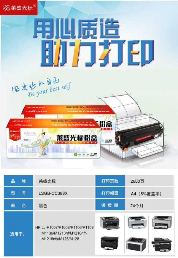 商品名称:莱盛光标 LSGB-CC388X 2600页 适用于 LJ-P1007/P1008/P1106/P1108/M1136 粉盒 黑色 (计价单位:支)