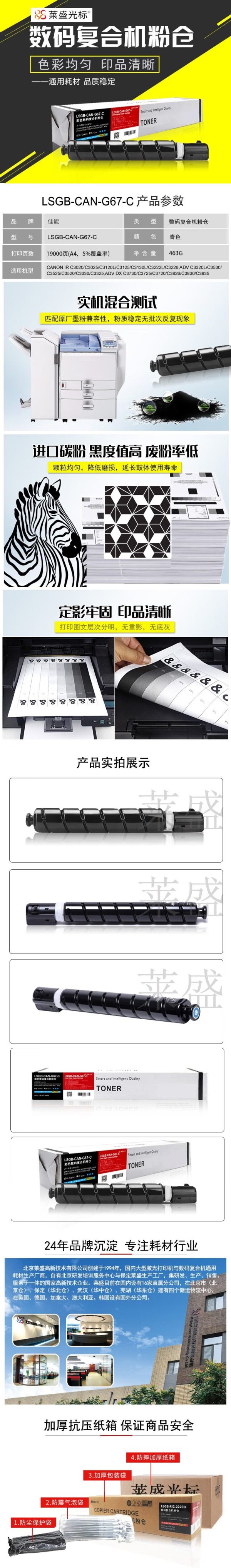 莱盛光标 LSGB-NPG-67C 19000页 适用于 CANON IMAGE C3320L/C3530/C3525/C3520/C3330/C3020 粉盒 青色 (计价单位:支)