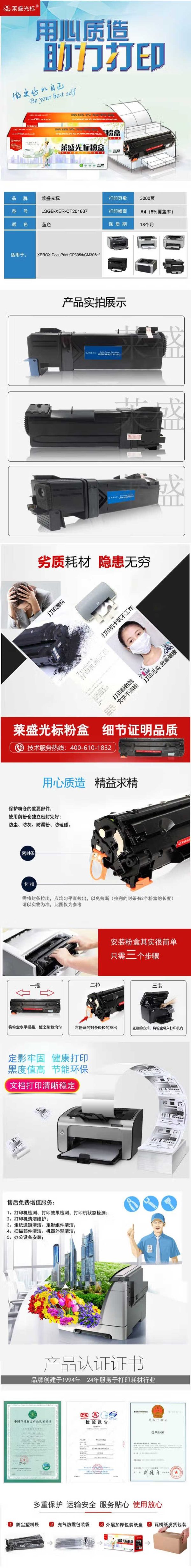 商品名称:莱盛光标 LSGB-XER-CT201637 3000页 适用于 XEROX DocuPrint CP305d CM305df 粉盒 蓝色 (计价单位:支)