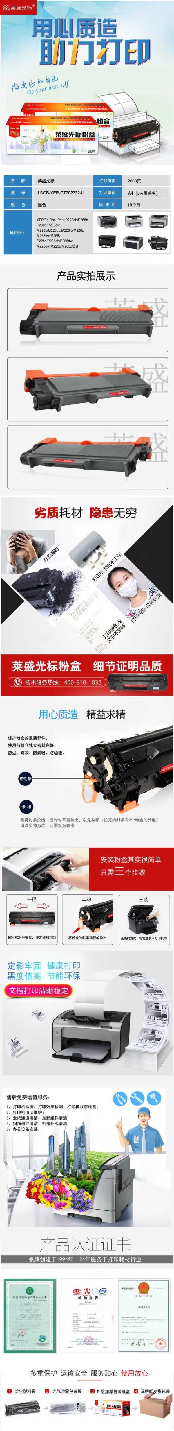 商品名称:莱盛光标 LSGB-XER-CT202332-U 2600页 适用于 XEROX DocuPrint P228db/P268b/P268d/P268dw 粉盒 黑色 (计价单位:支)