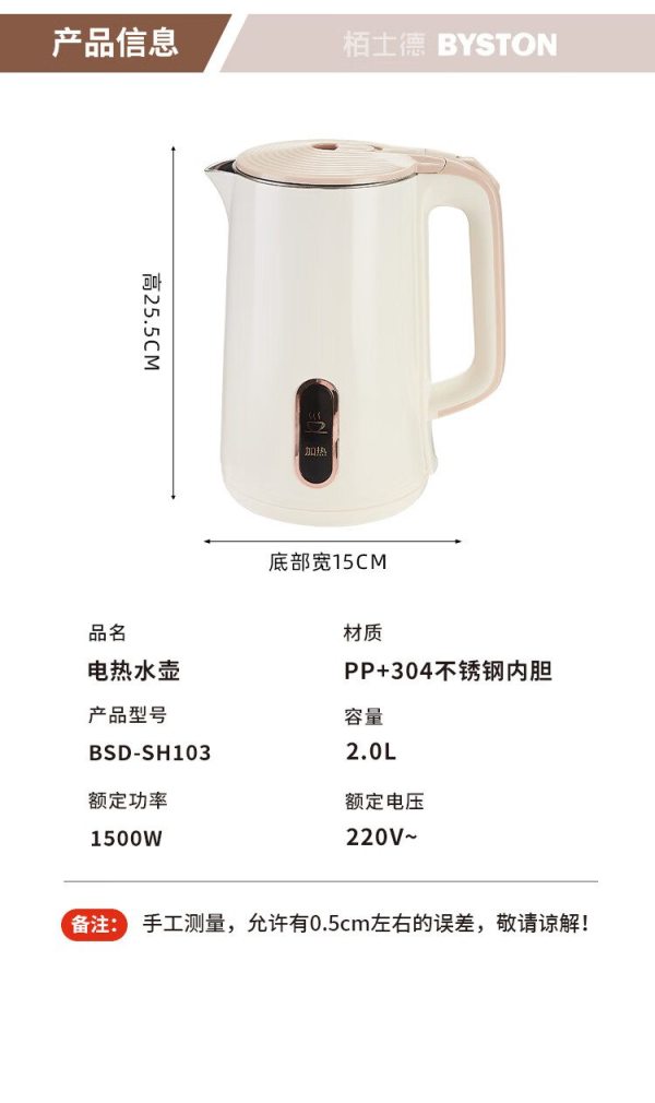 商品名称:栢士德BYSTON 电热水壶 BSD-SH103 2.0L