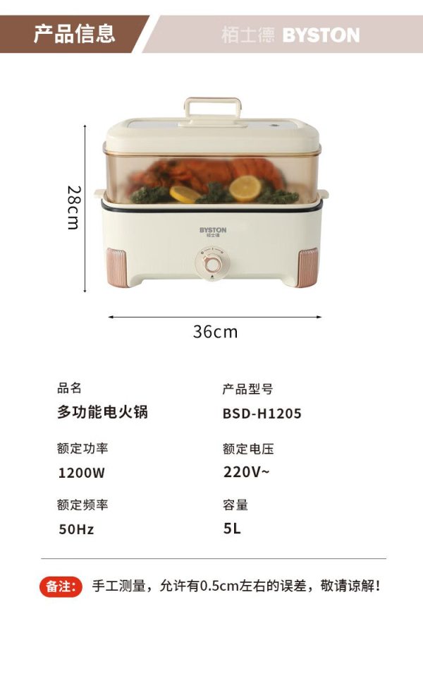 商品名称:栢士德BYSTON 多功能电火锅 BSD-H1205 5L