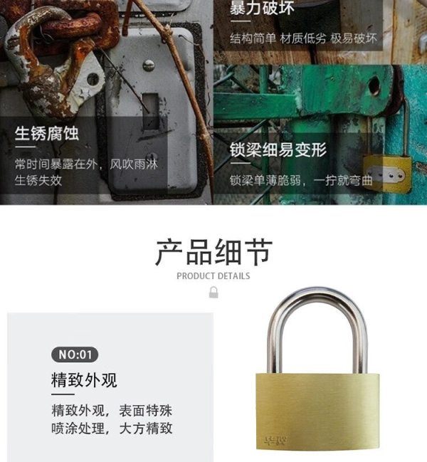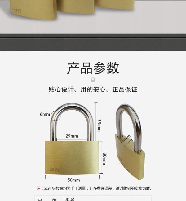 商品名称:华翼 GJC-HY30118 短梁铜挂锁 50mm (计价单位:个)