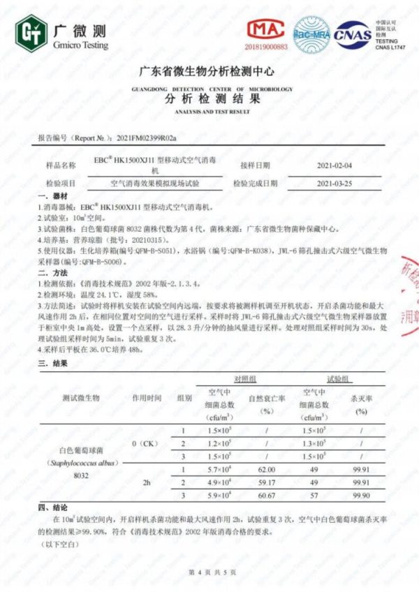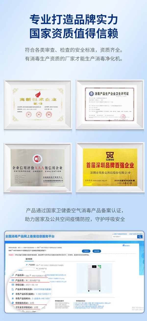 商品名称:EBC英宝纯 HK1500XJ11 移动式空气消毒净化机