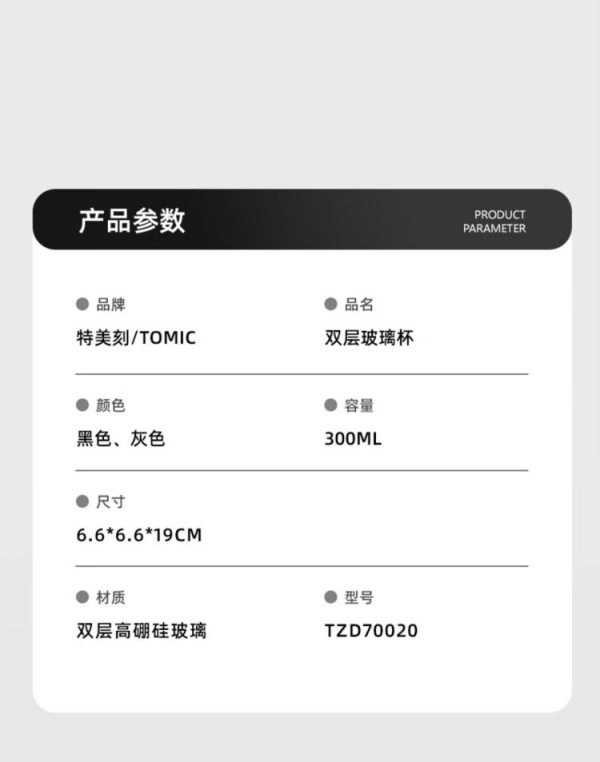 商品名称:特美刻 TZD70020 双层玻璃杯 300ml 灰色
