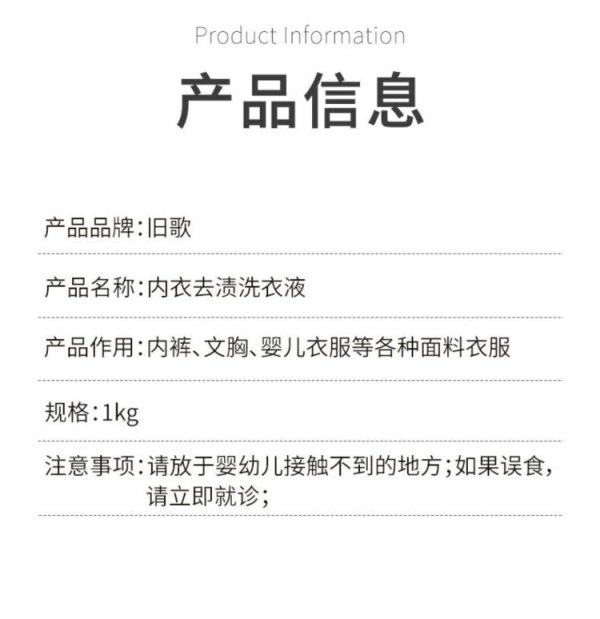 商品名称:旧歌 内衣去渍洗衣液 1kg