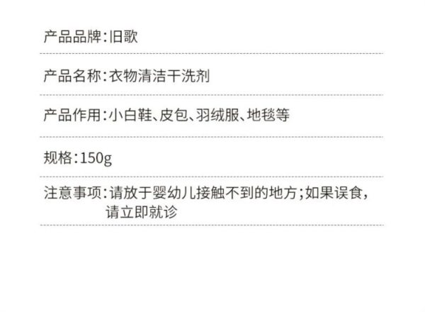 商品名称:旧歌 衣物清洁干洗剂 150g