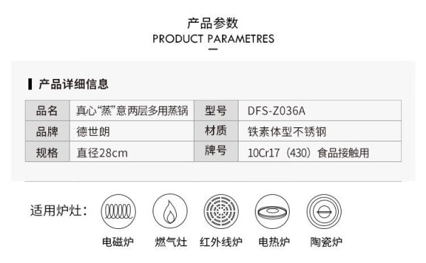 商品名称:德世朗 DFS-Z036A 28cm 不锈钢 蒸锅 (计价单位:个)