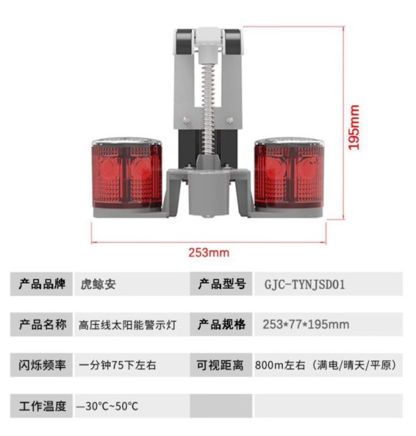 商品名称:虎鲸安 GJC-TYNJSD01 高压线太阳能警示灯 253*77*195mm 单位:件