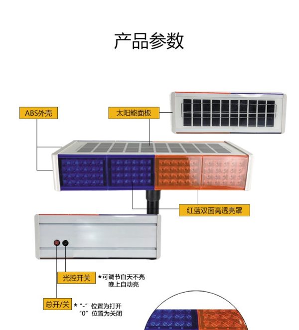 商品名称:虎鲸安 GJC-BSD001太阳能爆闪灯道路施工警示灯 活动式三脚架+交通警示灯 LED红蓝爆闪路障灯