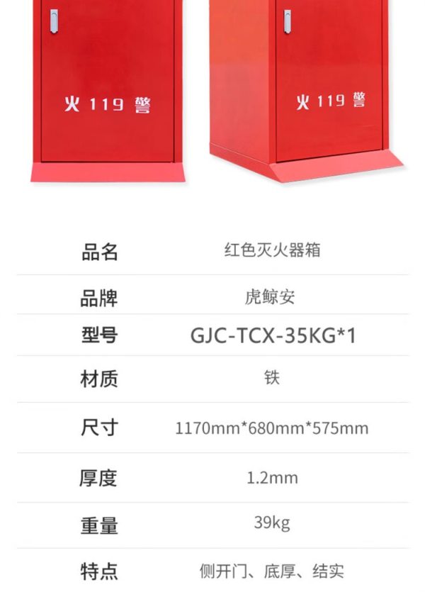 商品名称:虎鲸安 GJC-TCX-35KG*1 35KG推车灭火器箱 单个装(空箱) 1170*680*575MM 单位:个