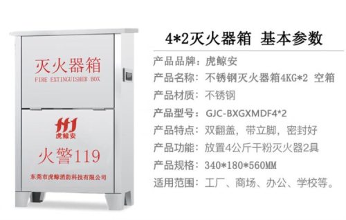 商品名称:虎鲸安 GJC-BXGXMDF4*2 可放2个4kg干粉灭火器 不锈钢灭火器箱 空箱 560X340X180 单位:个