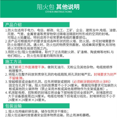 商品名称:虎鲸安 GJC-250 阻火包 尺寸:240*110*30MM 单位:包