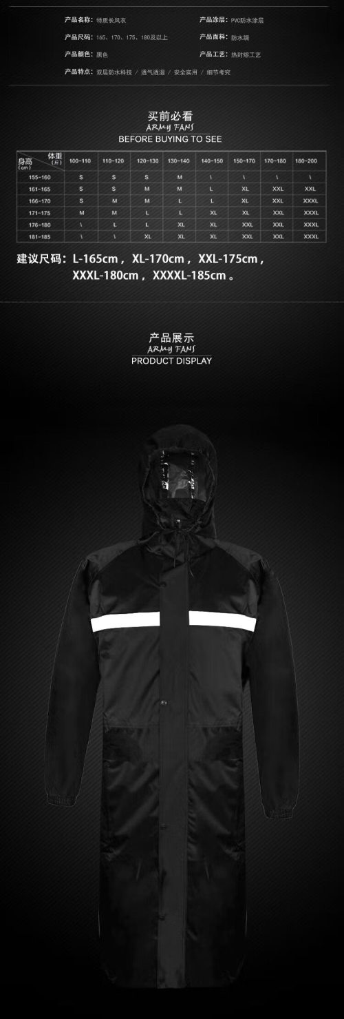 商品名称:虎鲸安 GJC-CFYYY 消防安全反光条特种长风衣雨衣 单位:件