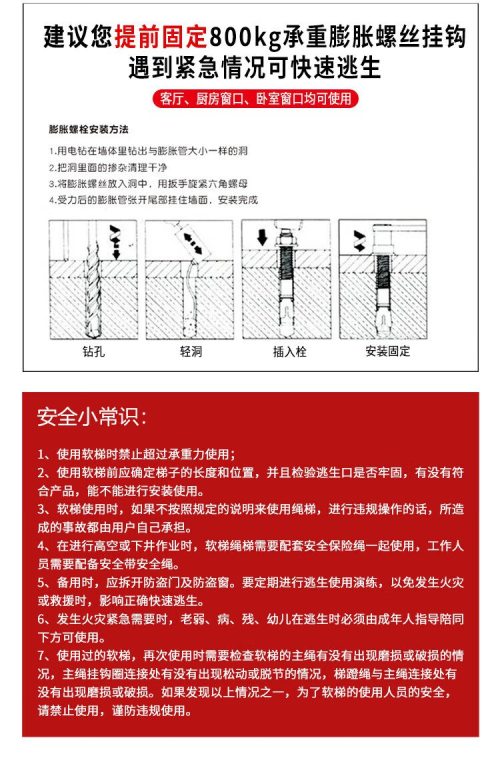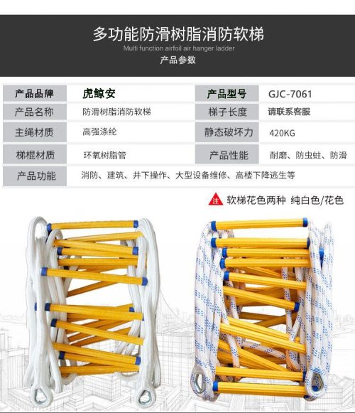 商品名称:虎鲸安GJC-7061 软梯绳梯消防逃生软梯家用攀爬高空作业树脂软梯+双钩(单位:米)