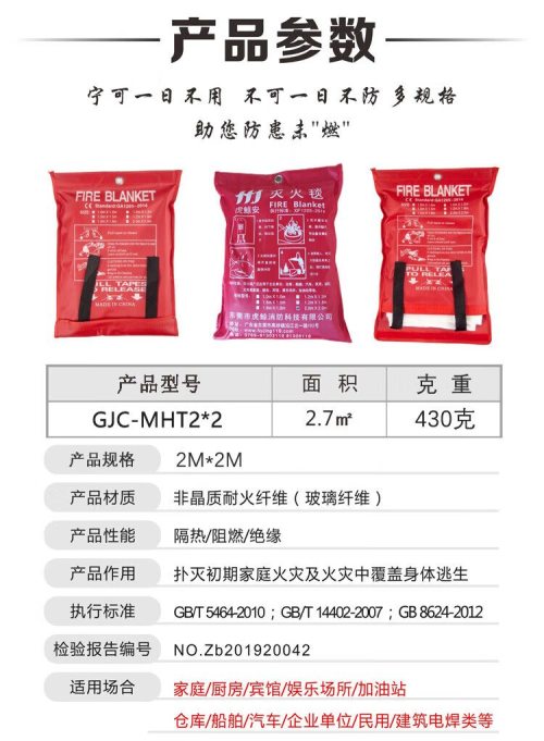 虎鲸安 GJC-MHT2*2 灭火毯 2Mx2M 单位:张