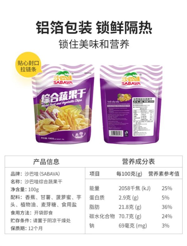 商品名称:沙巴哇 100g 综合蔬果干 (计价单位:袋)