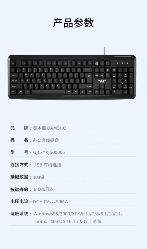 商品名称:捌木熊 GJC-YXJS00005办公有线键盘(单位:个)黑色