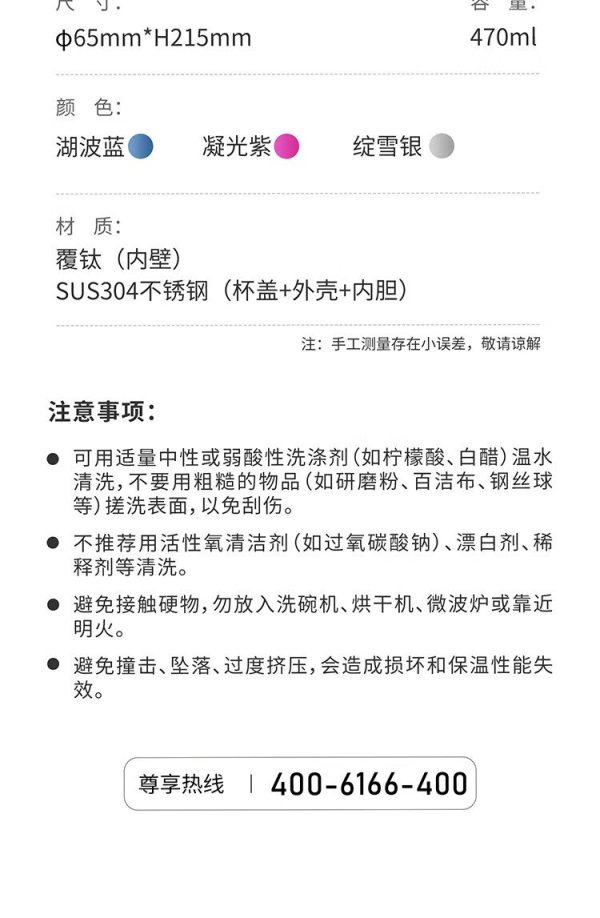 商品名称:PORSTI 钛合金GTBST-2502 焖享杯保温杯470ml 湖波蓝 单位:个