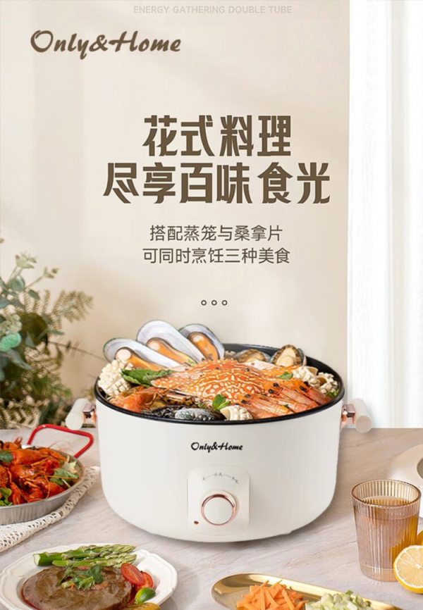 Only&Home KL-DZG03 可煮、可焖一锅多用 多功能电煮锅(电热锅)奶茶白 (单位:台)