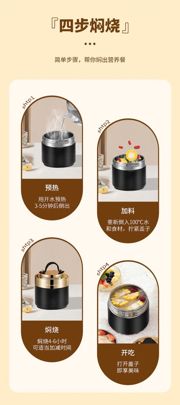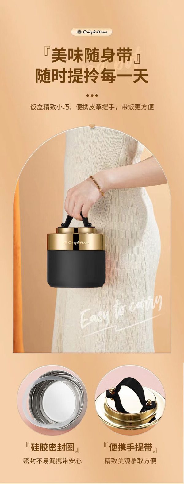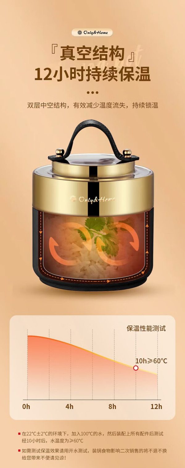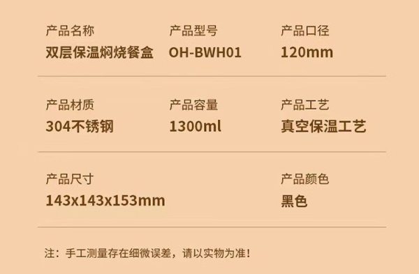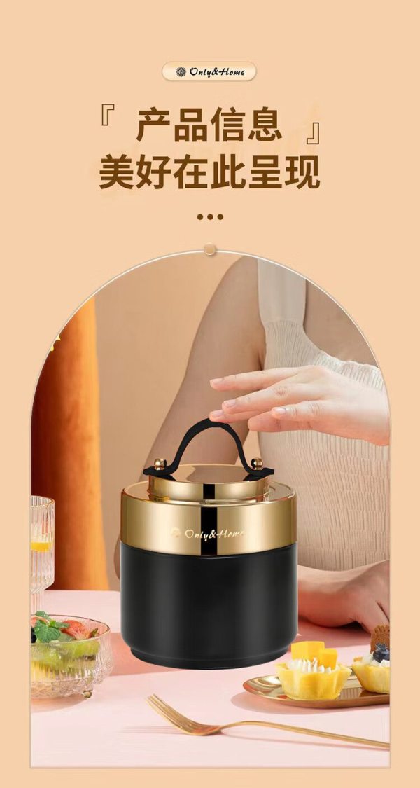 商品名称:Only&Home OH-BWH01 食品级优质304不锈钢 双层保温焖烧餐盒 黑色 (单位:个)