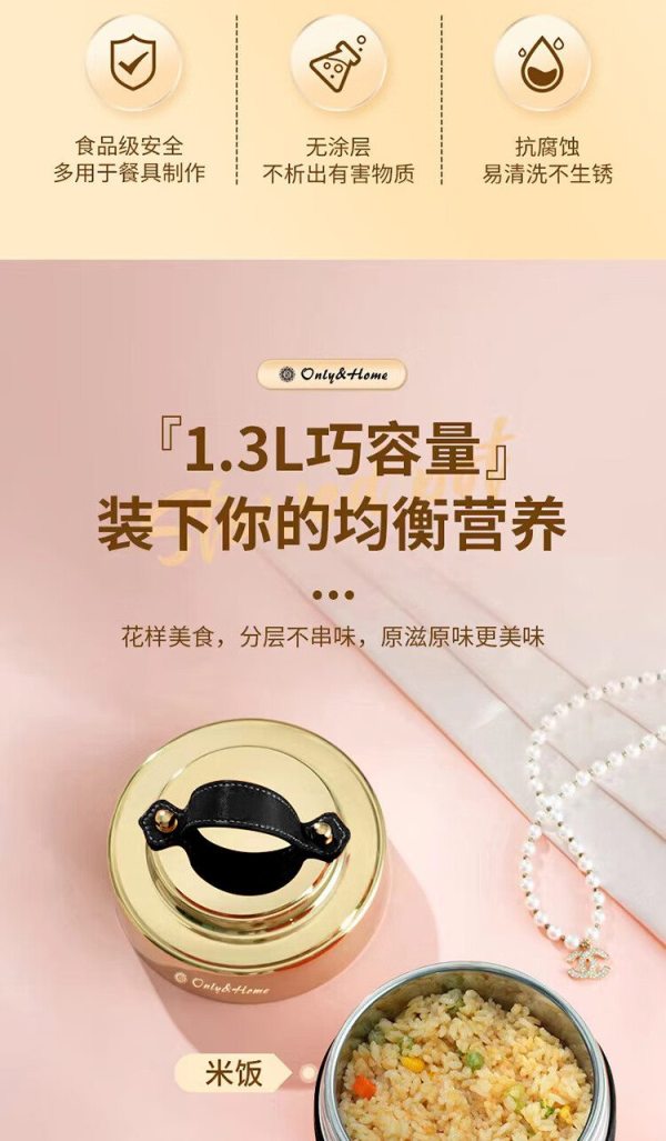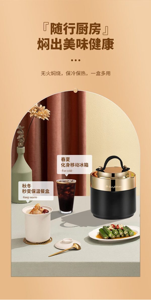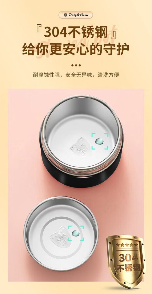 Only&Home OH-BWH01 食品级优质304不锈钢 双层保温焖烧餐盒 黑色 (单位:个)