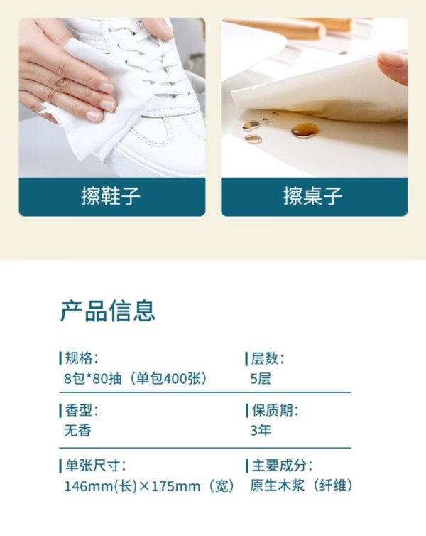 商品名称:奇强 QQCZD224 加厚加大家庭实惠装原木纤维纸巾 146mmx175mm*400张*8包3提抽取式面巾纸(单位:组)