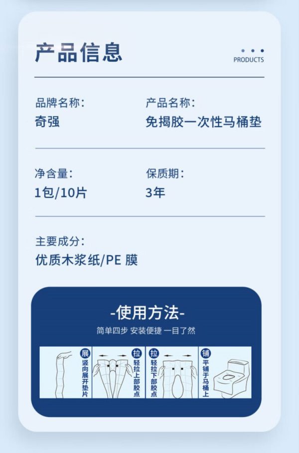 商品名称:奇强 QQTDD309 旅行粘贴式旅游酒店防水坐垫纸产妇坐便垫 40cm*60cm*10片/5包 免揭胶一次性马桶垫(单位:组)