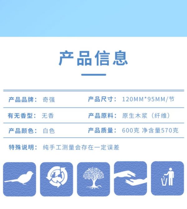 商品名称:奇强 QQZJD132酒店专用 商用 大盘纸 600克 (180米)120mmx91mm(四层)/4卷 生活用纸(单位:组)