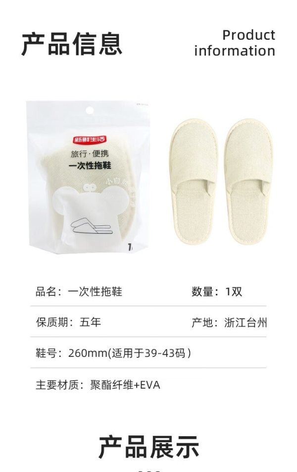 商品名称:新鲜生活 SH-7184-5 旅行 260mm*1双*5双一次性 拖鞋*5双(单位:组)