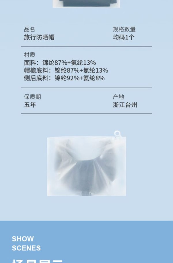 商品名称:新鲜生活 SH-7198 旅行 均码1个 防晒帽(单位:个)