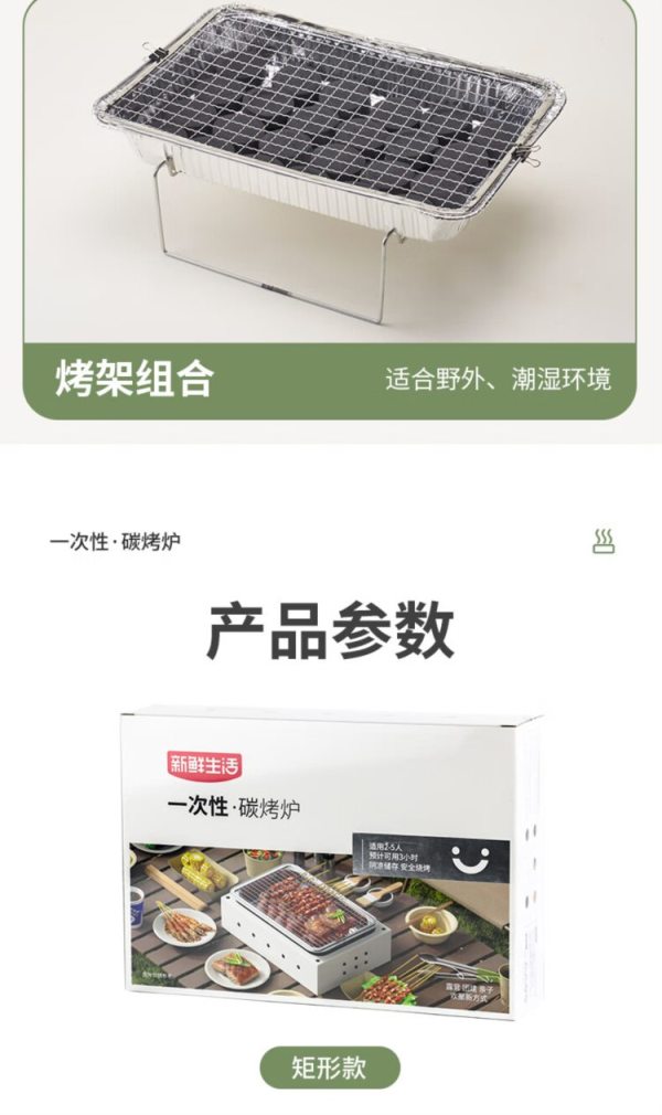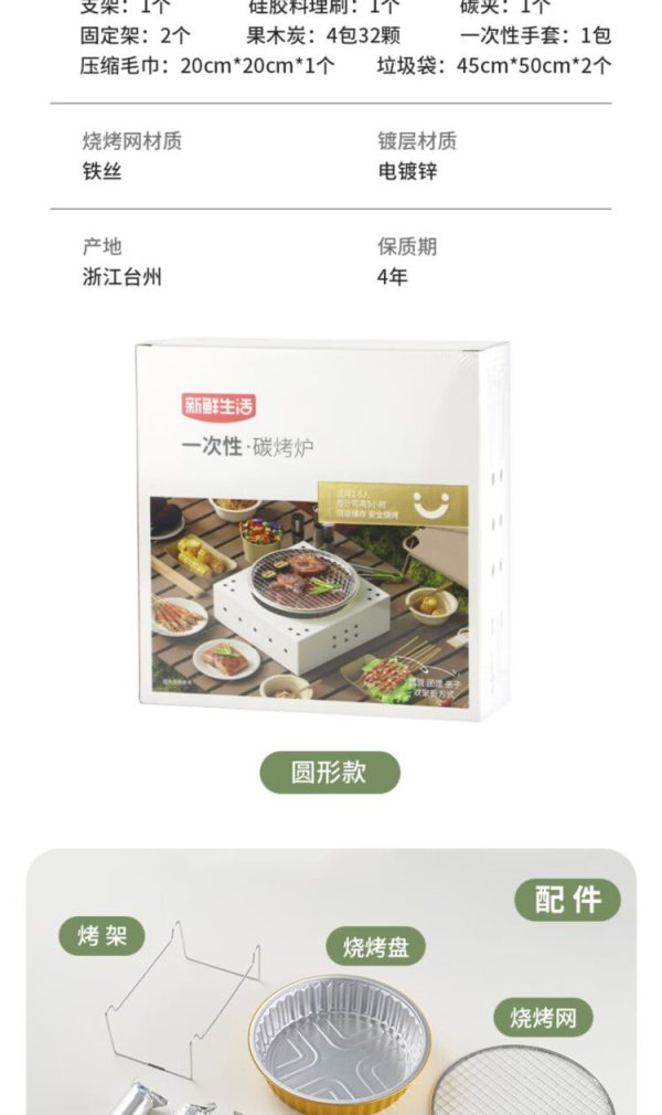 商品名称:新鲜生活 SH-7617 户外庭院聚会含木炭便携式家用一次性碳烤炉(圆形)(单位:套)