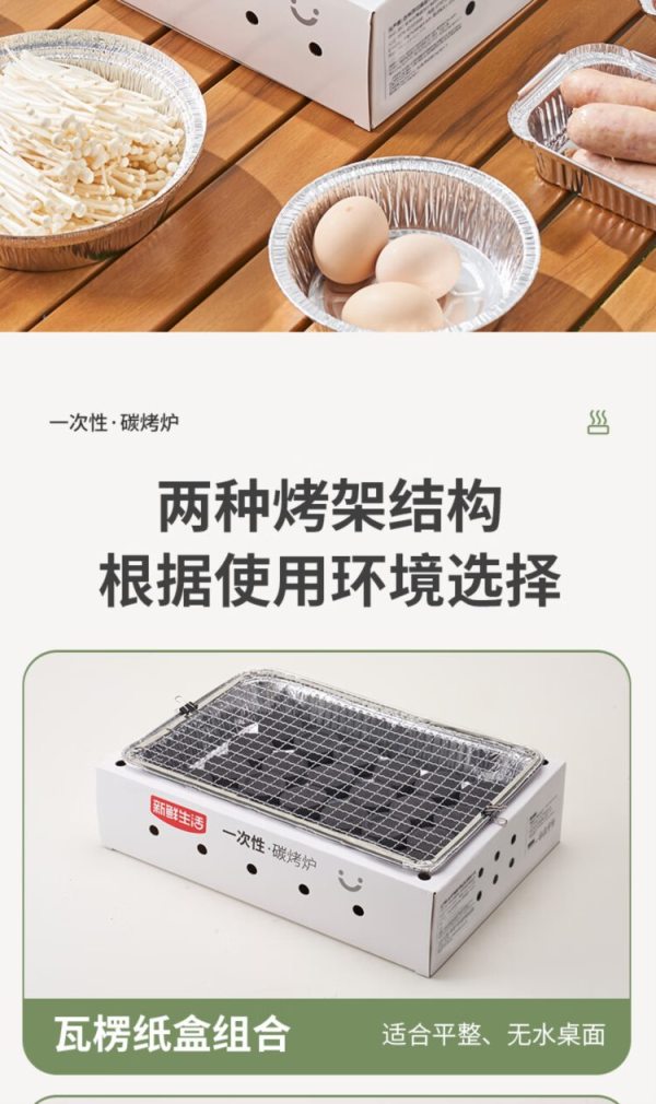 新鲜生活 SH-7617 户外庭院聚会含木炭便携式家用一次性碳烤炉(圆形)(单位:套)