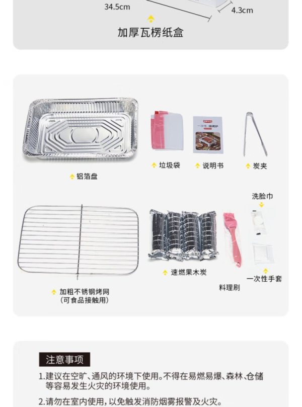 商品名称:新鲜生活 SH-7618 户外庭院聚会含木炭便携式家用一次性碳烤炉(方形)(单位:套)