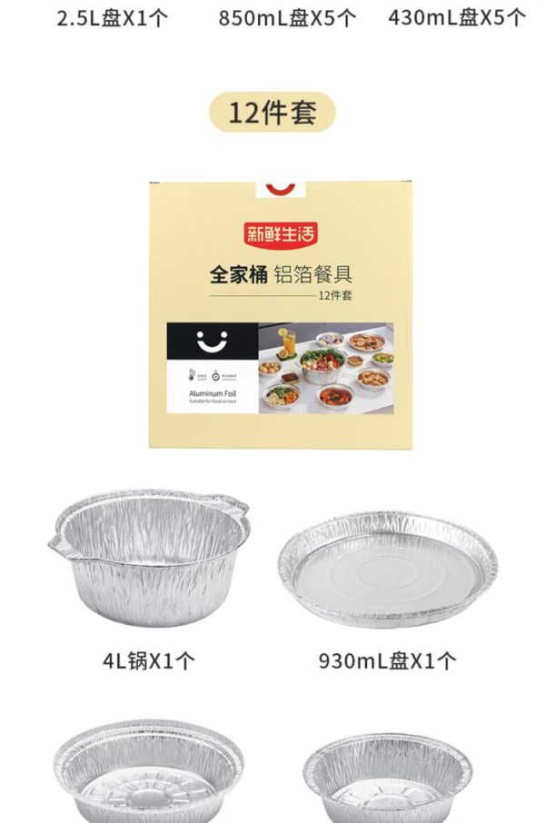 新鲜生活 SH-7849 空气炸锅专用锡纸碗可重复使家用烤箱铝箔烘焙蛋挞生蚝锡纸盒盘杯 铝箔餐具(12件套)(单位:套)