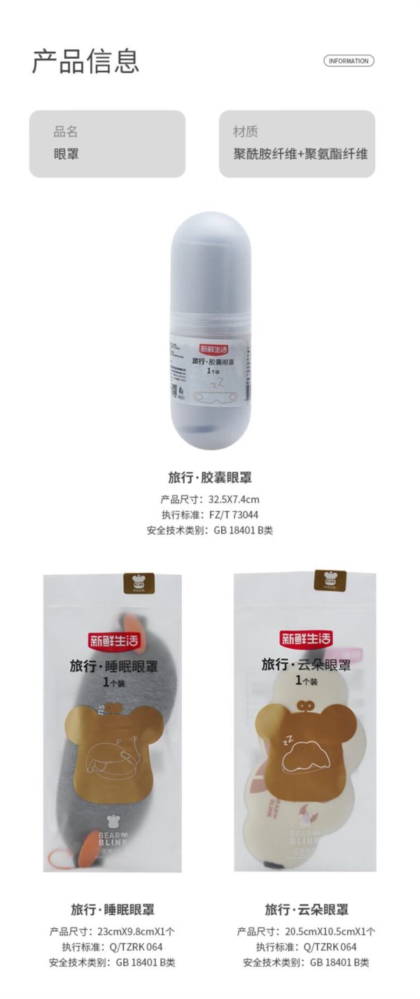 商品名称:新鲜生活 SH-7943 旅行20.5cm*10.5cm 云朵眼罩SH-7943(单位:个)