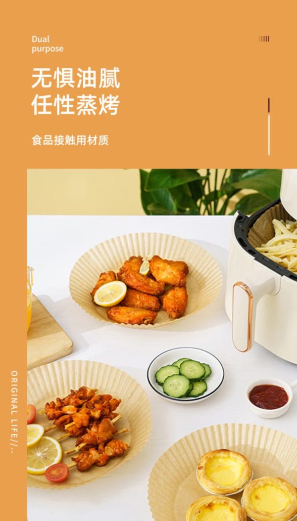 新鲜生活 SH-8018 空气炸锅专用纸盘家用耐高温食物烤箱烘焙硅油纸 底φ16cm*高度4.5cm*100张 本色 空气炸锅 纸托(单位:盒)