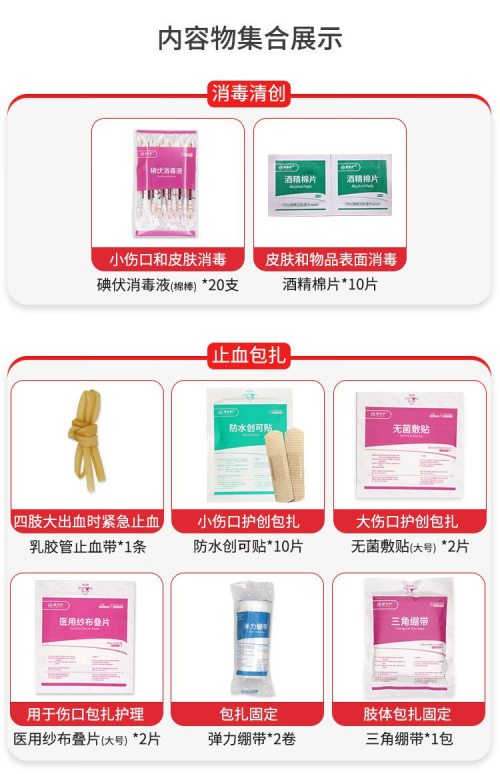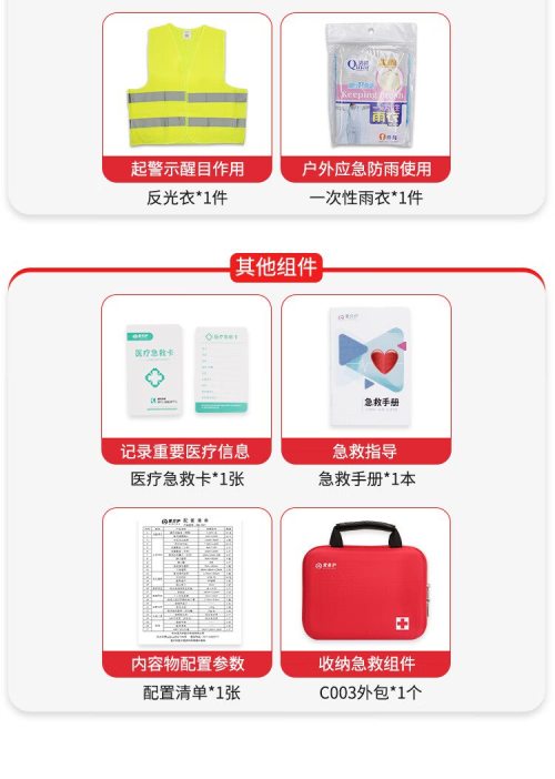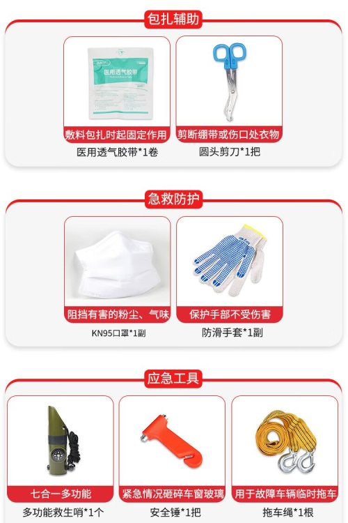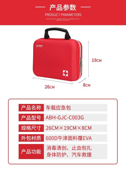 商品名称:爱备护 车载应急包 ABH-GJC-C003G 含21种61件急救用品 单位:套