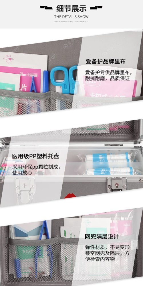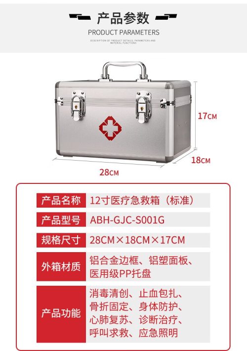 商品名称:爱备护 12寸医疗急救箱(标准) ABH-GJC-S001G 含27种84件急救用品 单位:套